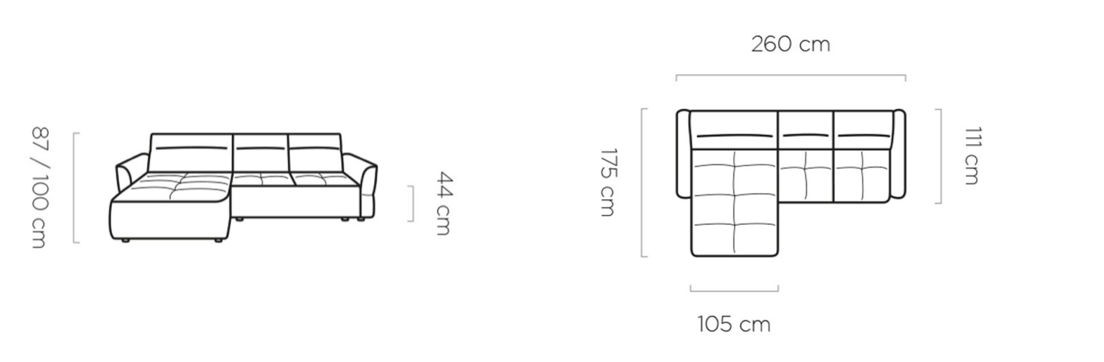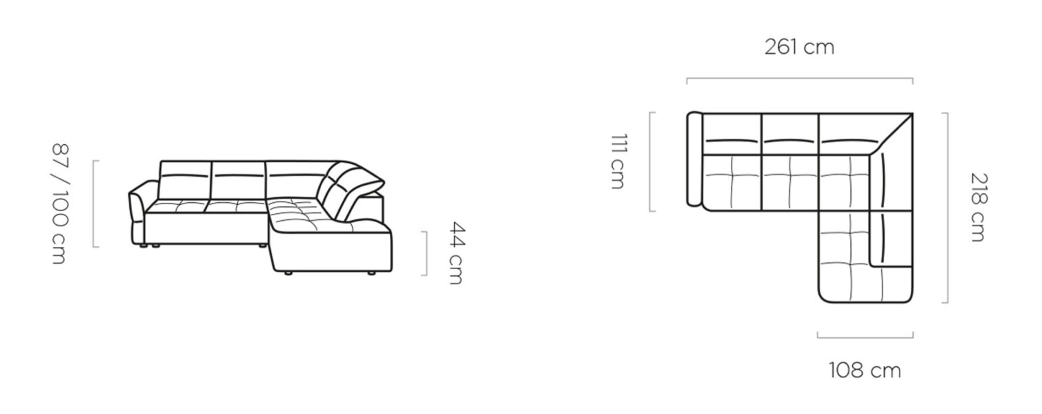 ‘L’ : 261 x 218 cm, fekvőfelület: 115 x 195 cm