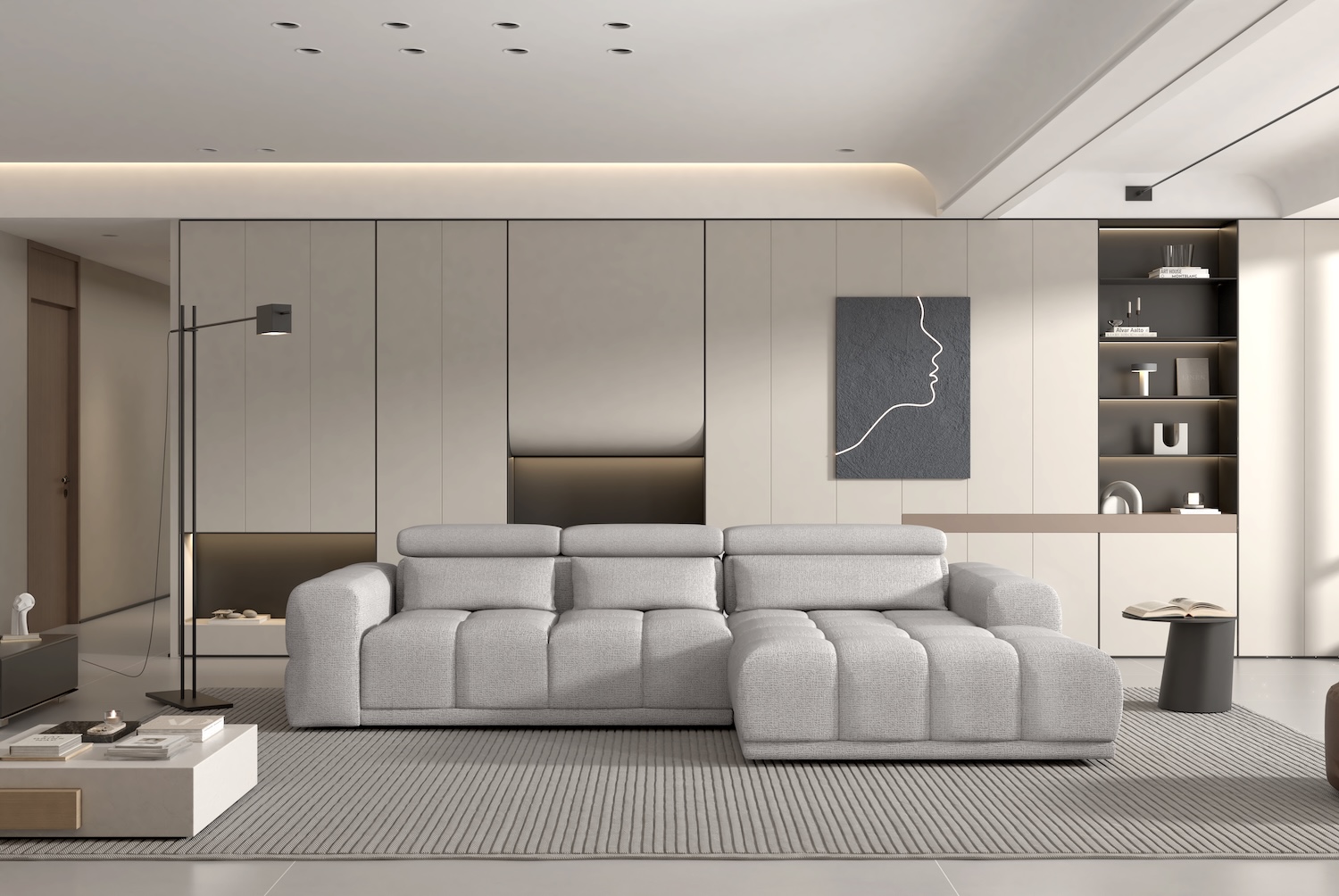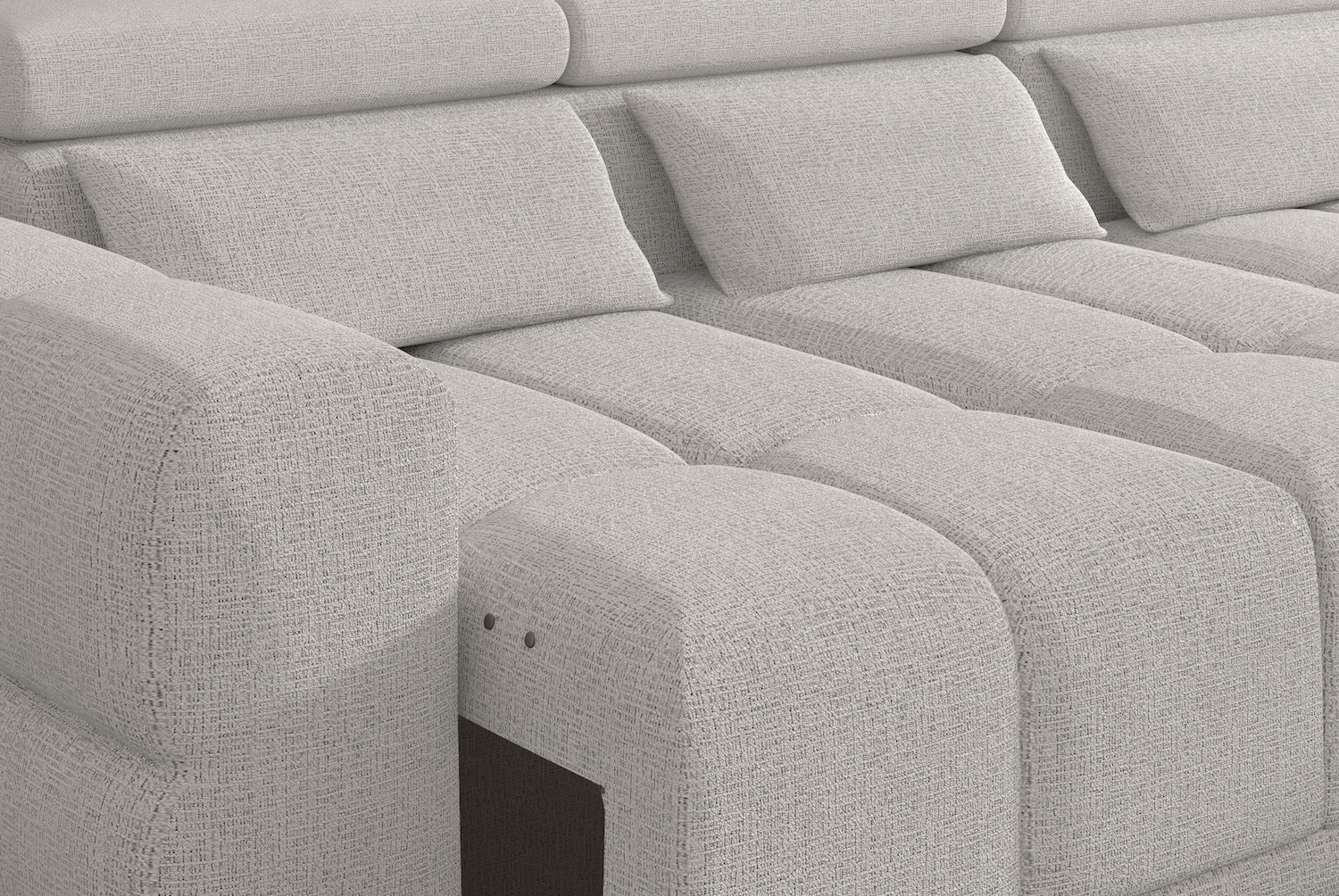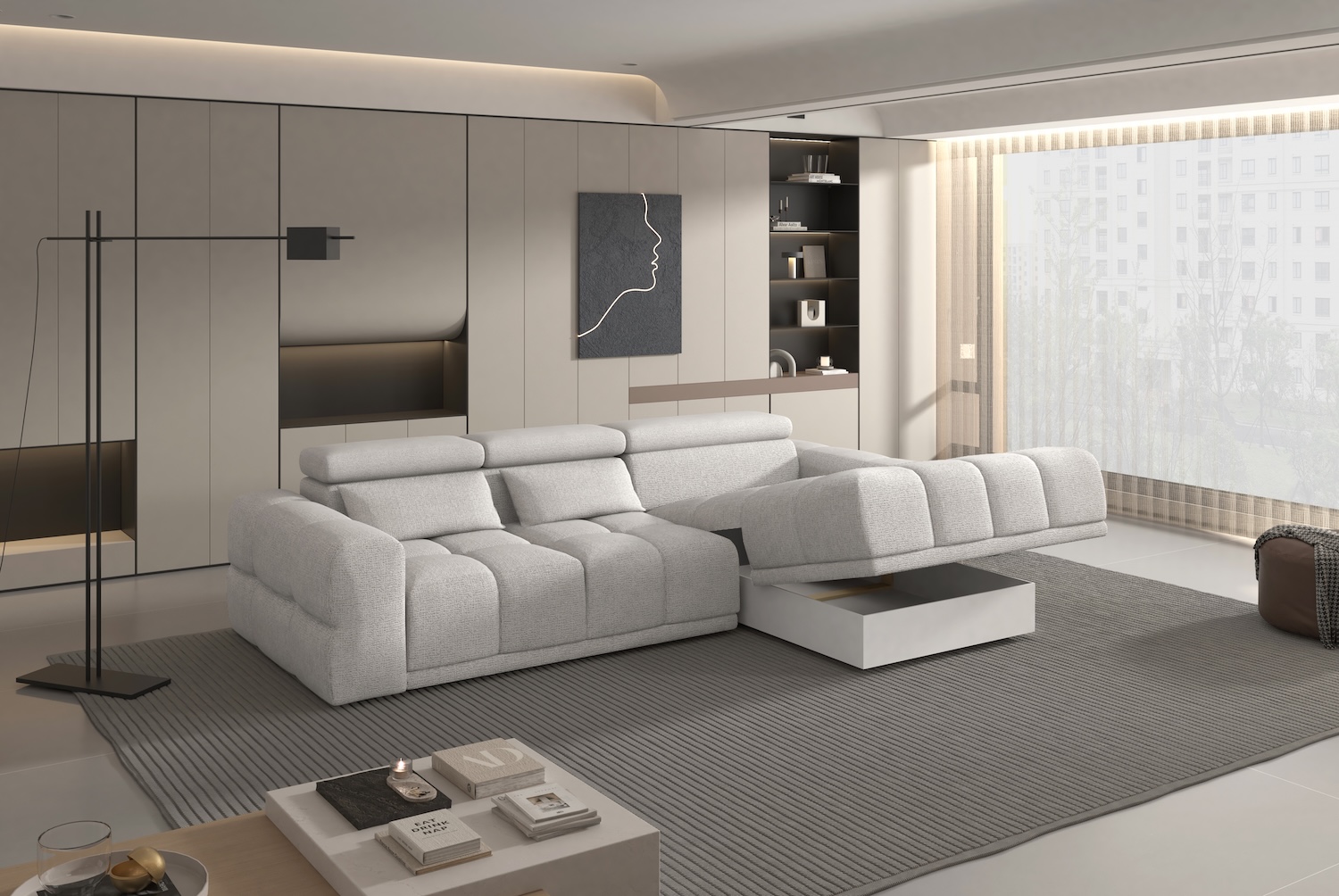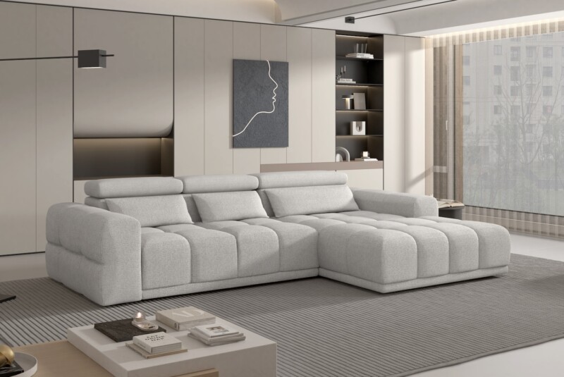 Stílusos megjelenésű sarok ülőgarnitúra kényelmi funkciókkal.