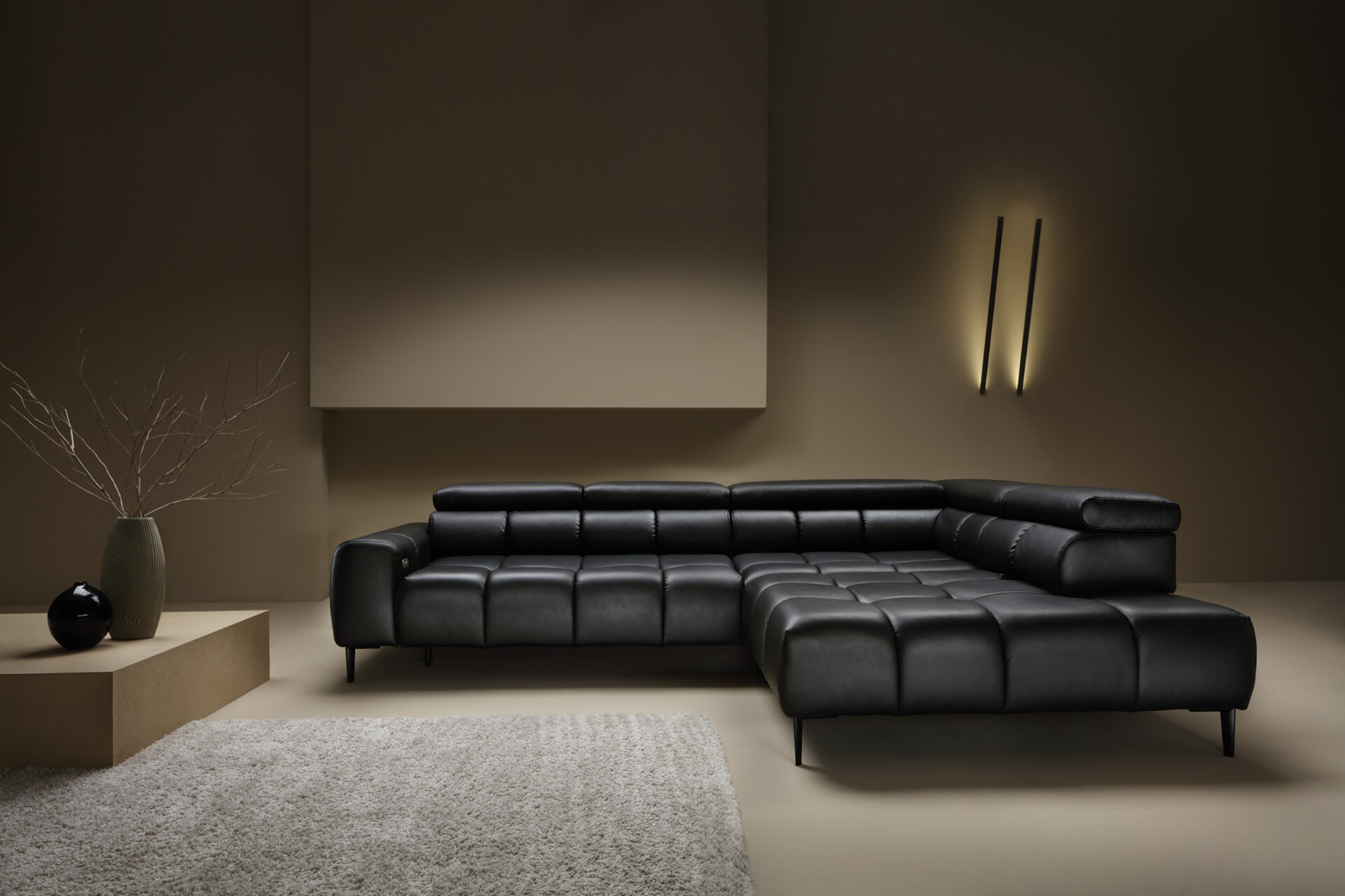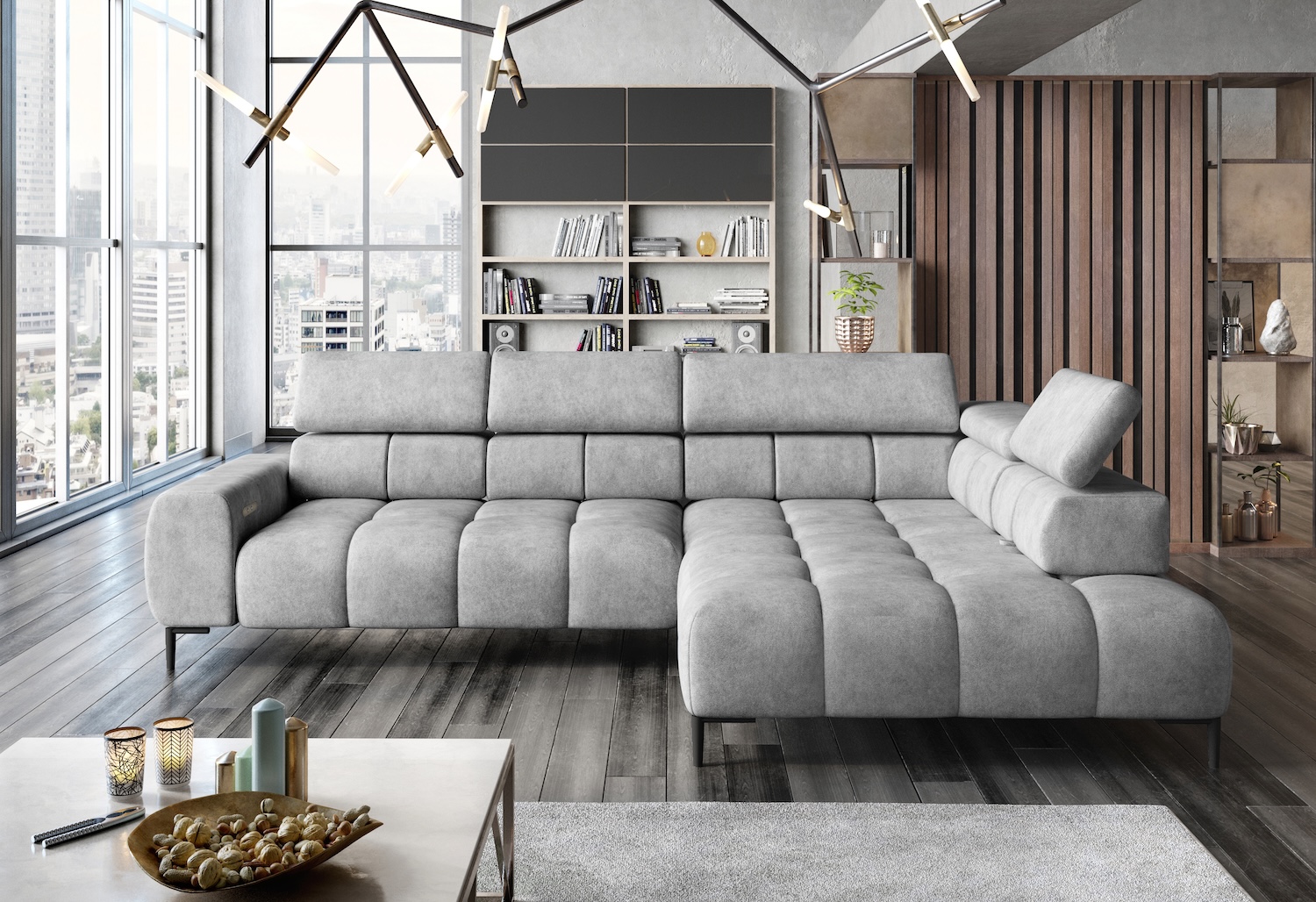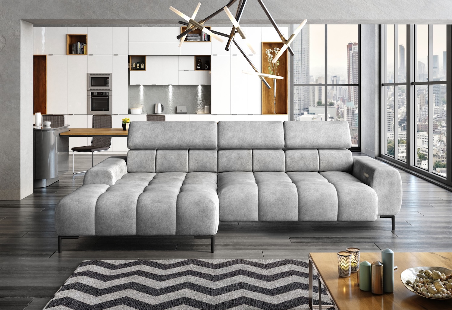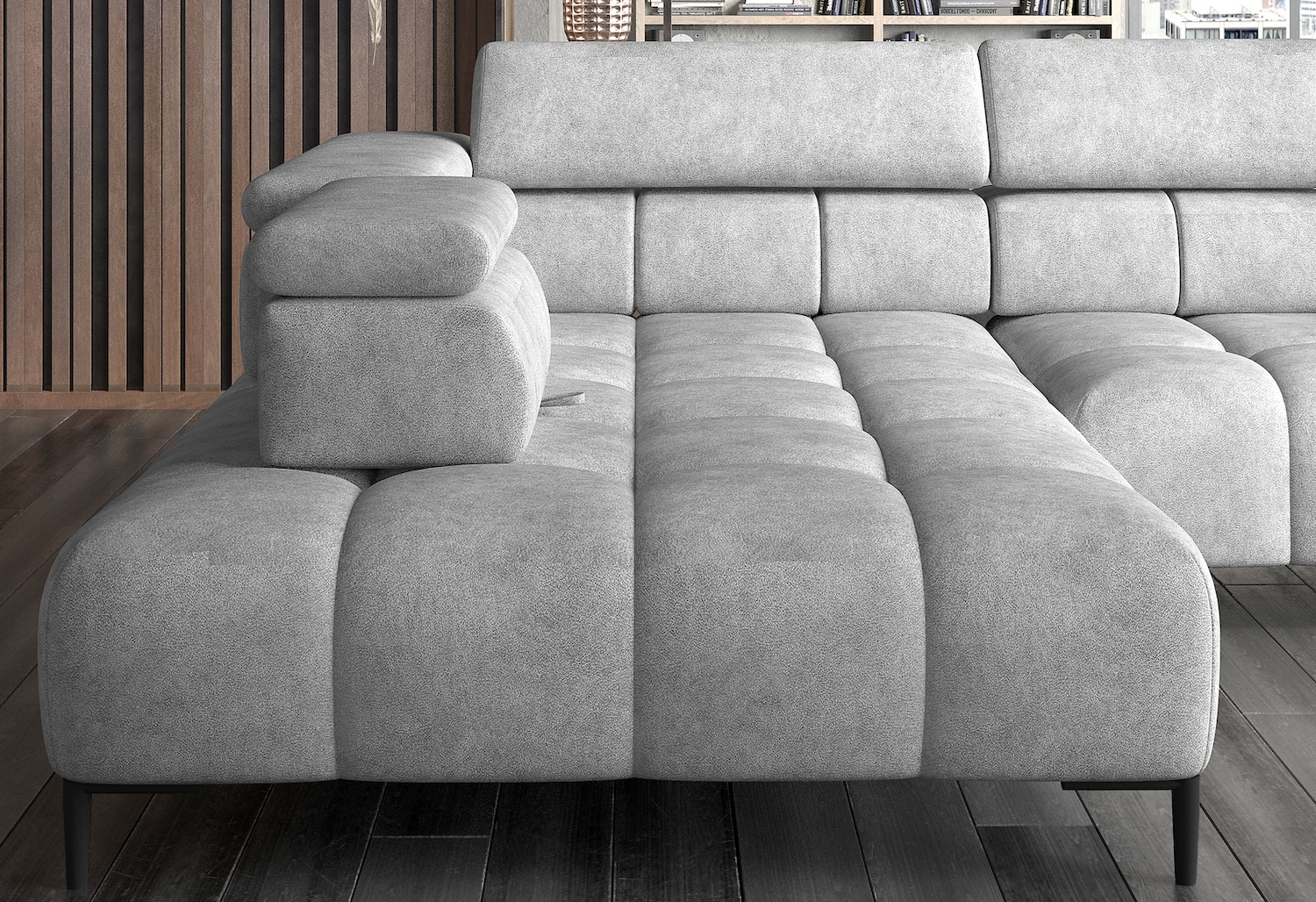 Stílusos megjelenésű sarok ülőgarnitúra kényelmi funkciókkal, 3 féle méretben.