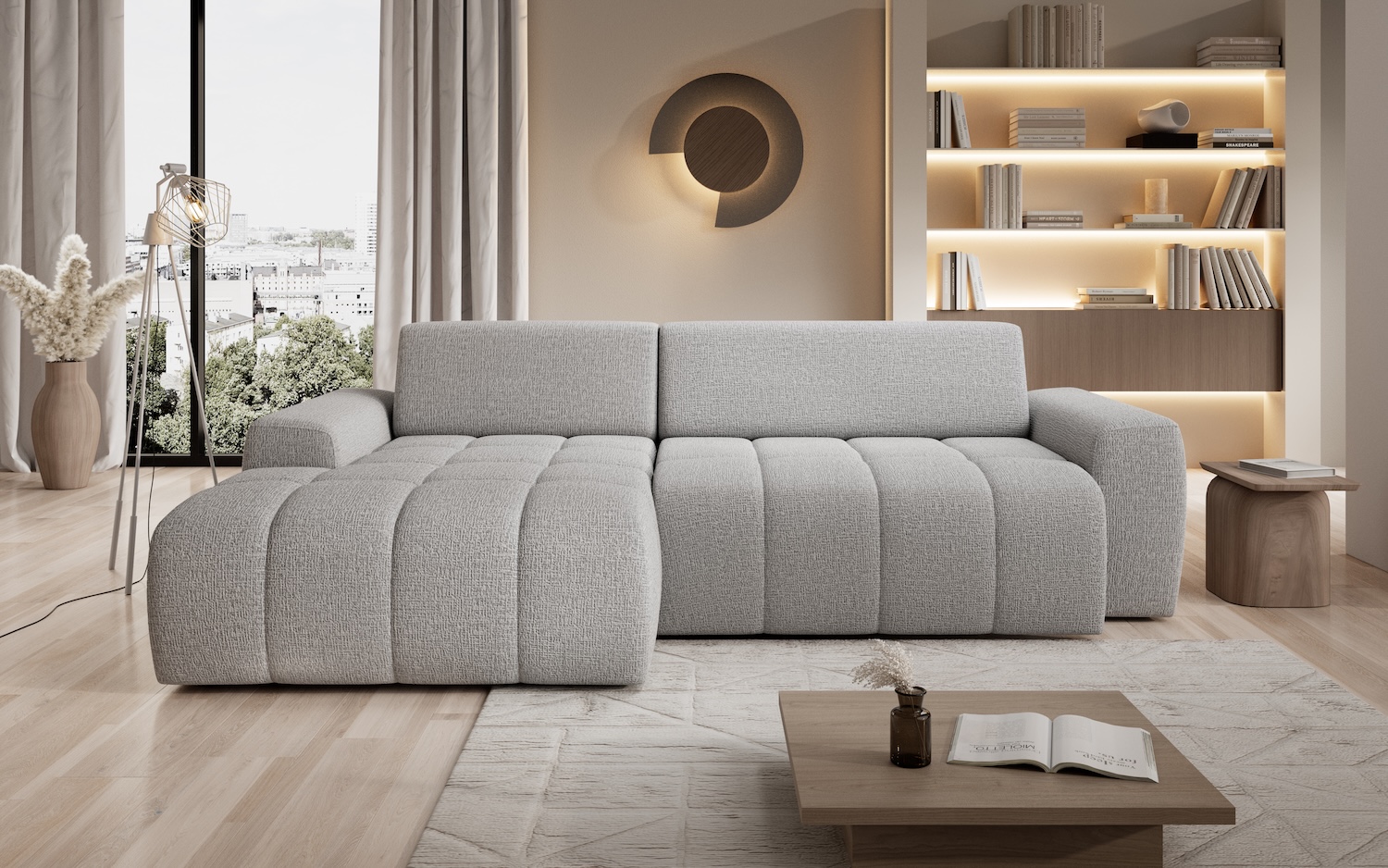 Stílusos megjelenésű sarok ülőgarnitúra kényelmi funkcióval.
