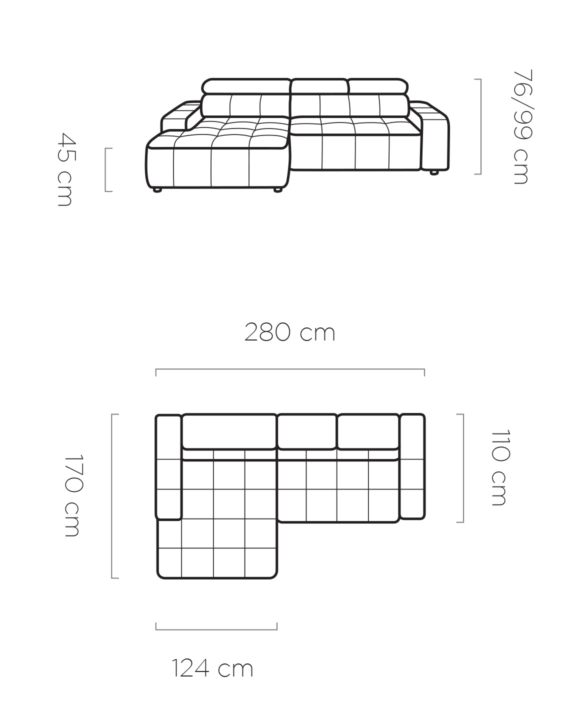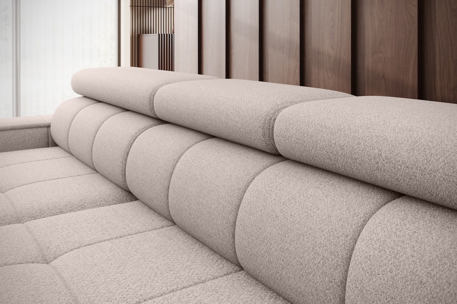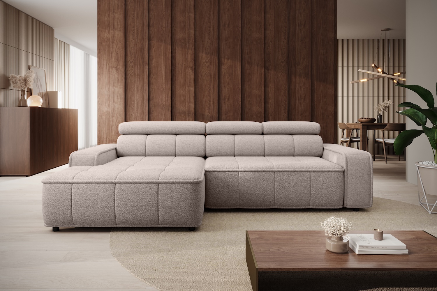 Stílusos megjelenésű sarok ülőgarnitúra kényelmi funkciókkal.