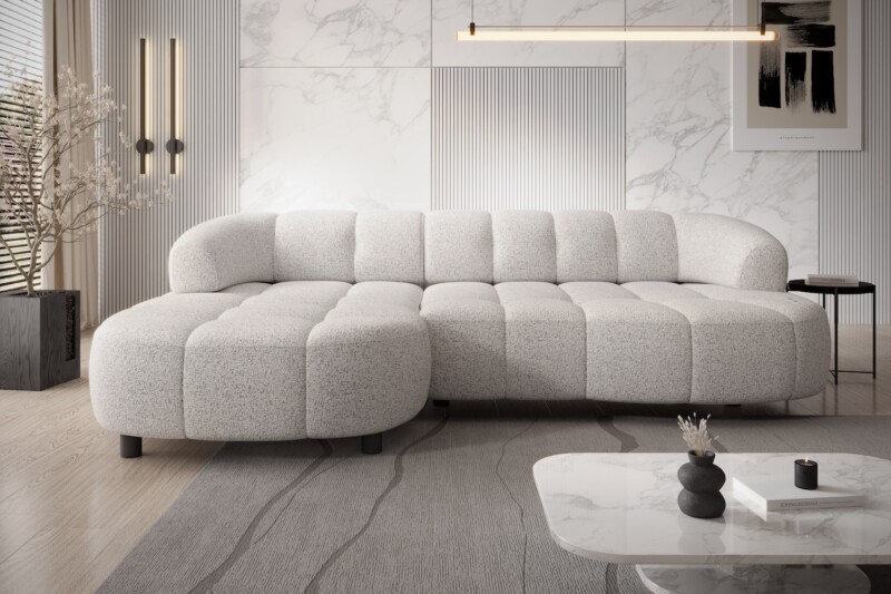 Stílusos megjelenésű sarok ülőgarnitúra kényelmi funkciókkal.